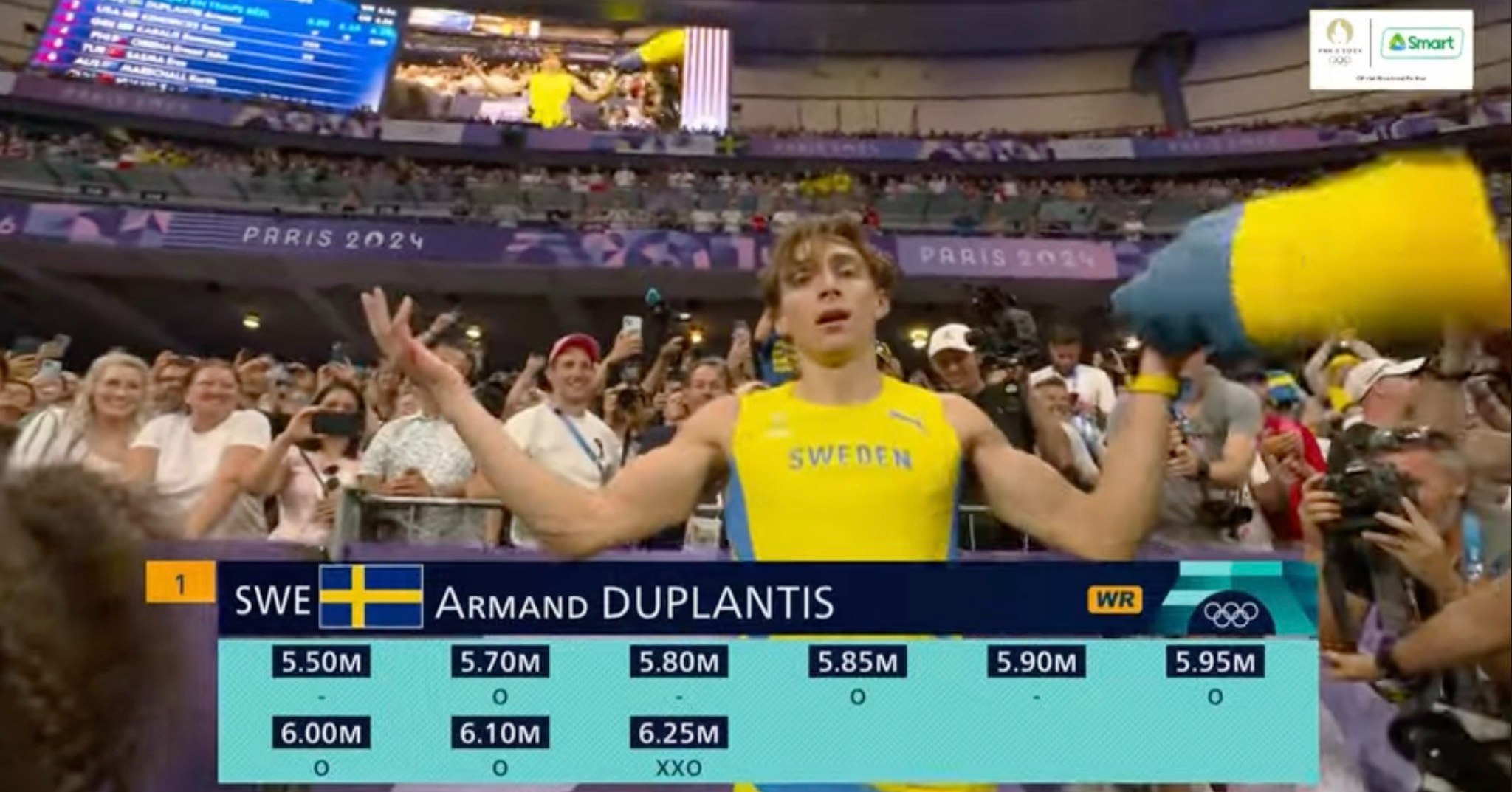 One, he didn’t do jumps in some meters. I heard the commentators said that at one time, Duplantis had rested for 30 minutes. (Check his final results in the screengrab.)