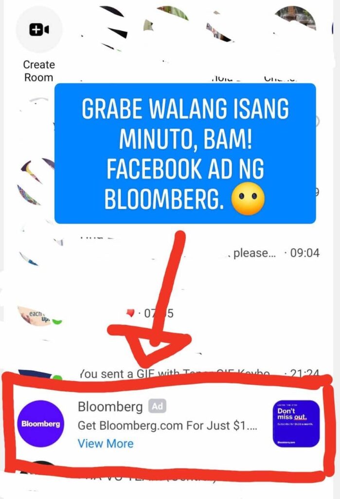 When I read the article in Bloomberg, the Facebook Pixel is present in their website. The pixel “triggered” the action that I took (read the article). With that, Facebook sent me an ad.